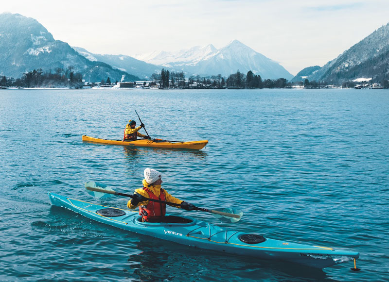 Im Hintergrund das schneebedeckte Bergpanorama, vor sich eine heisse Thermoskanne Tee: Ihr Team-Ausflug auf dem Brienzersee kann starten. Geschützt von wärmenden Trockenanzügen beginnt das Abenteuer Kajak-Tour mit einer kurzen Einführung im Strandbad Bönigen und entwickelt sich entlang versteckter Strände und Buchten paddelnd zu einem unvergesslichen Erlebnis. Ein erfahrener Guide führt Sie und Ihr Team zu idyllischen Klippen und an Orte, die sich nur vom Wasser aus entdecken lassen.