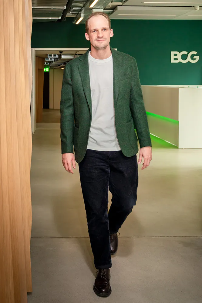 Grünes Veston, weisses T-Shirt, schwarze Hose: Severin Oechslin gibt sich heute betont leger. «Bei der Boston Consulting Group Switzerland (BCG) legen wir Wert auf eine entspannte Kleiderordnung», sagt er. «Auch wenn unser Image als internationale Unternehmensberatung oft etwas anderes vermuten lässt.» Wenn es die Situation verlangt, trage er auch einmal eine Krawatte, «aber das kommt selten vor.»