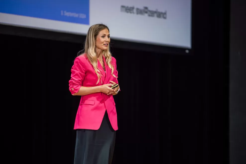 Nadine Jürgensen während ihrer Keynote. (Foto: David Biedert / Miss Moneypenny)