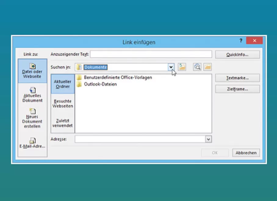 Firmeninterne Dateien sollten innerhalb des Unternehmens darum möglichst nicht versendet werden. Outlook bietet die Möglichkeit, nur den Link zu einer Datei auf einem freigegebenen Laufwerk zu versenden. Die Datei muss sich in diesem Fall an einem Ort befinden, zu dem alle zumindest Lesezugriff haben. Im folgenden Beispiel wird eine Word-2013-Datei als Link versendet. Das Vorgehen in Excel 2013 und PowerPoint 2013 ist genau gleich.