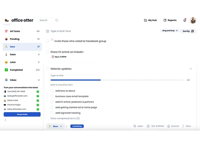 2. Inbox-Integrations: Damit werden Aufgaben und Nachrichten aus der E-Mail-Inbox, Slack oder Textnachrichten wie SMS in Office Otter integriert.