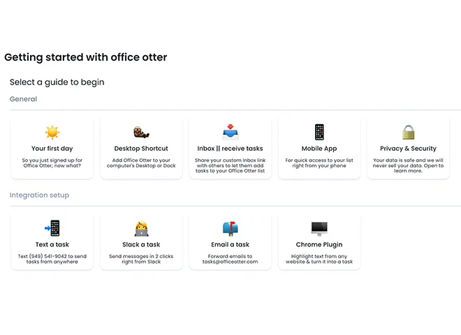 Shayanne Wright und ihr Team haben verschiedene Guides zur Verfügung gestellt, die den Usern helfen sollen, sich schnell mit Office Otter zurechtzufinden und die Integrationen zu starten. Dazu klicken Sie einfach auf die entsprechende Fläche. Wer ungeduldig ist und Office Otter so schnell wie möglich testen möchte, kann mit der «Text a task»-Integration beginnen. Diese lässt sich am einfachsten aufsetzen.